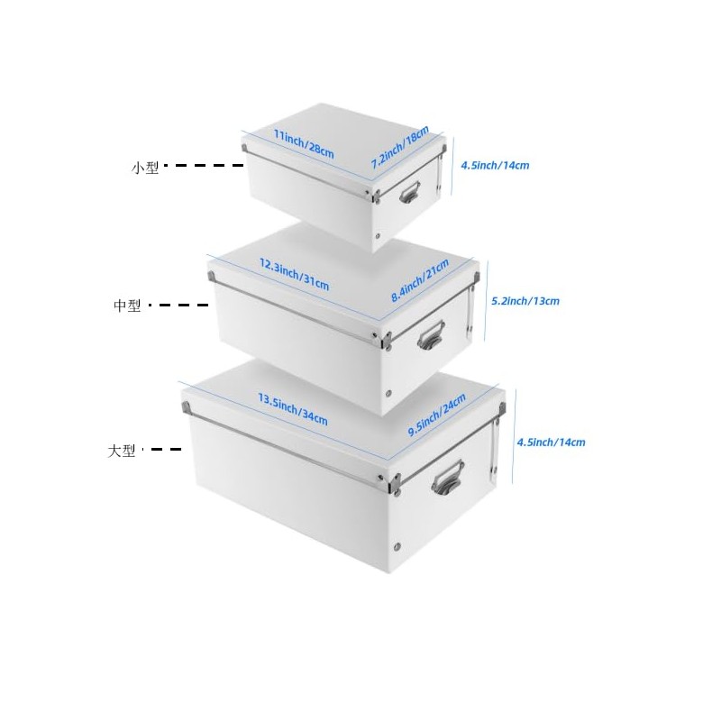 - Set of 3 in various sizes: small Medium Large Storage Box,Press-stud fastening, easy to assembling and foldable for space saving storage