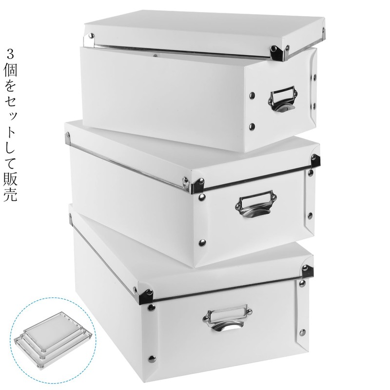 XUCHUN Decorative Storage Box with Lids,Set of 3 Waterproof Foldable Plastic Box Multiple Sizes for Toys/Socks/Office(White)