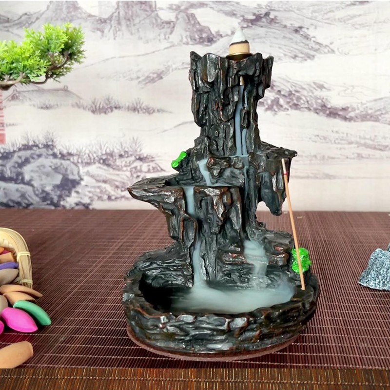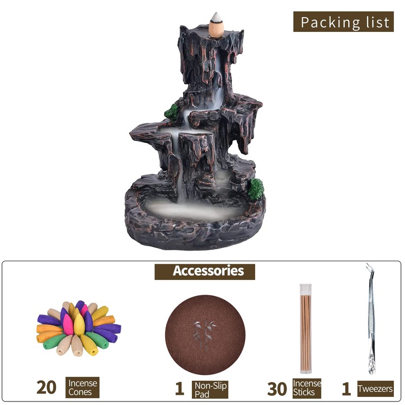 XUDREZ Mountain Waterfall Backflow Incense Burner, Incense Holder Censer with 20pcs Incense Cones + 30pcs Incense Sticks