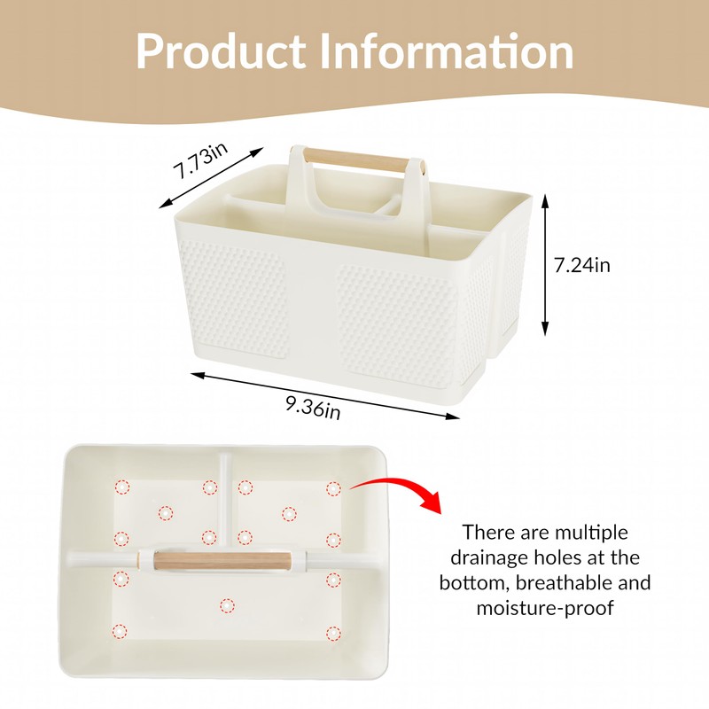 - Drainage design: We have designed fifteen drainage holes at the bottom of the cleaning supplies organizer, and the accurate drainage layout ensures that every place can drain smoothly, bid farewell to the water problem, and ensure good drainage without affecting the appearance, which is a necessity for the bathroom, kitchen storage, and university dormitory.