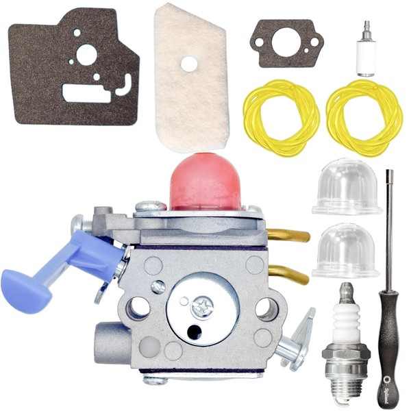 - Package Includes: 1 Carburetor,2 Primer Bulbs,2 Fuel Lines,1 Fuel Filter,1 Spark Plug,2 Gaskets,1 Carb Adjusting Tool .Please carefully check the pictures and compatible models before purchasing to prevent mismatches