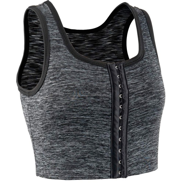 XUJI Women Tomboy Elastic Band Colors Tank Top 3 Rows Central Clasp Chest Binders (DG, L) Dark Grey
