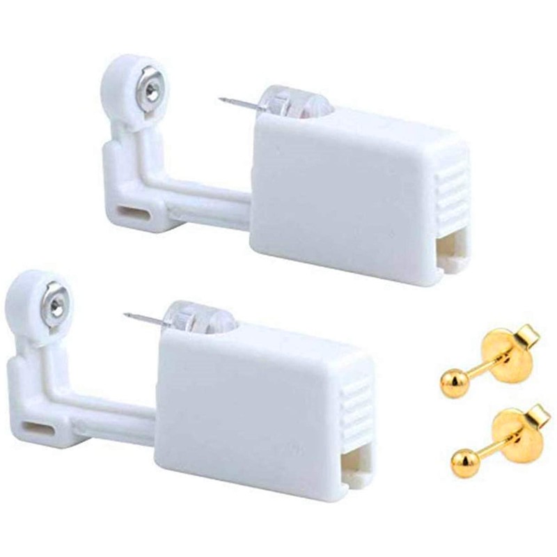 - Package Content: 2 pieces ear piercing guns, 2 pieces ear studs and 2 pieces alcohol pads. Each unit combines a ear piercing gun with a built-in ear stud