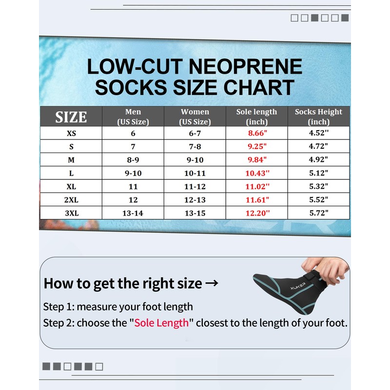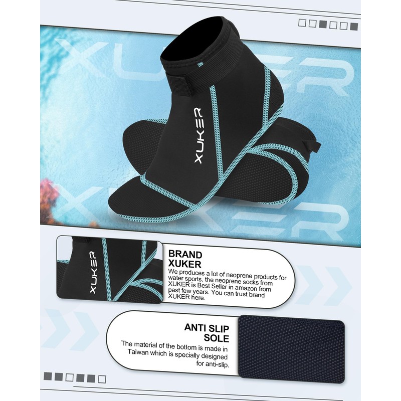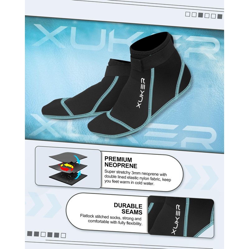 - 【Ideal for Various Sports】XUKER Neoprene Socks Fits Multiple Water Sports - lake pool ocean swimming, snorkeling, jetskiing, kayaking, paddling, boarding, diving, surfing, or just hanging out with your feet in the water; Beach Activities - sand soccer, beach volleyball, beach combing; Exercises - yoga, pilates.