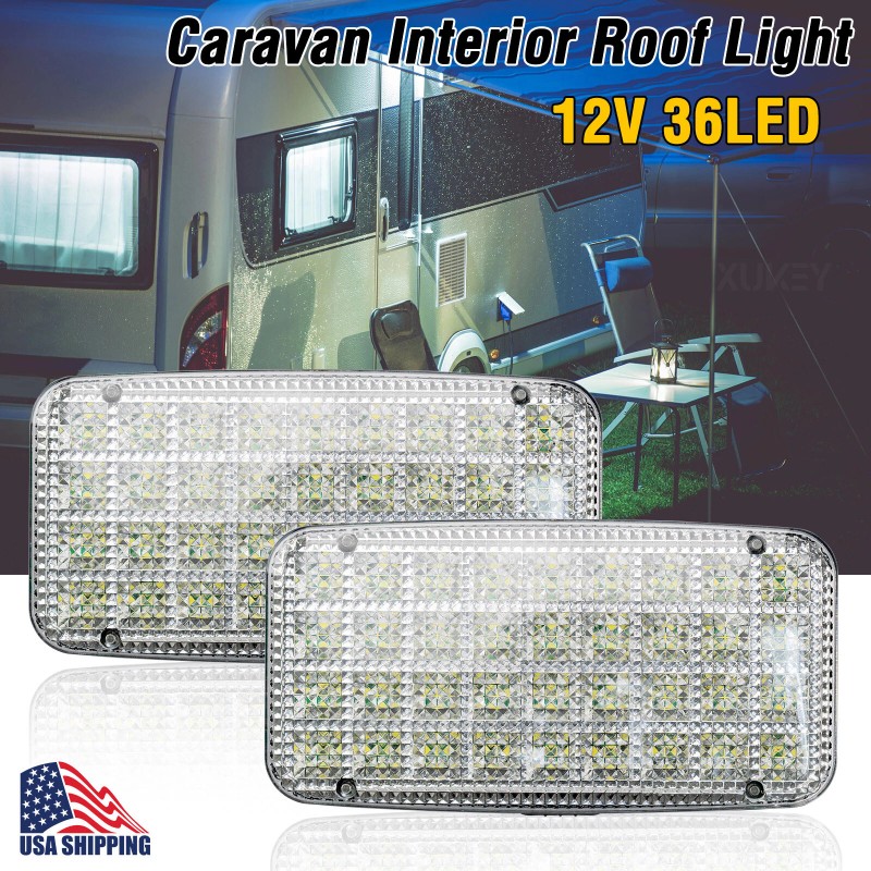 LED Interior Pair Roof Ceiling Light White Cabin Dome Reading Caravan Pickup Van