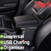XUKEY Universal Car Armrest Lid Cover Center Console USB Cup Holder Storage Organizer