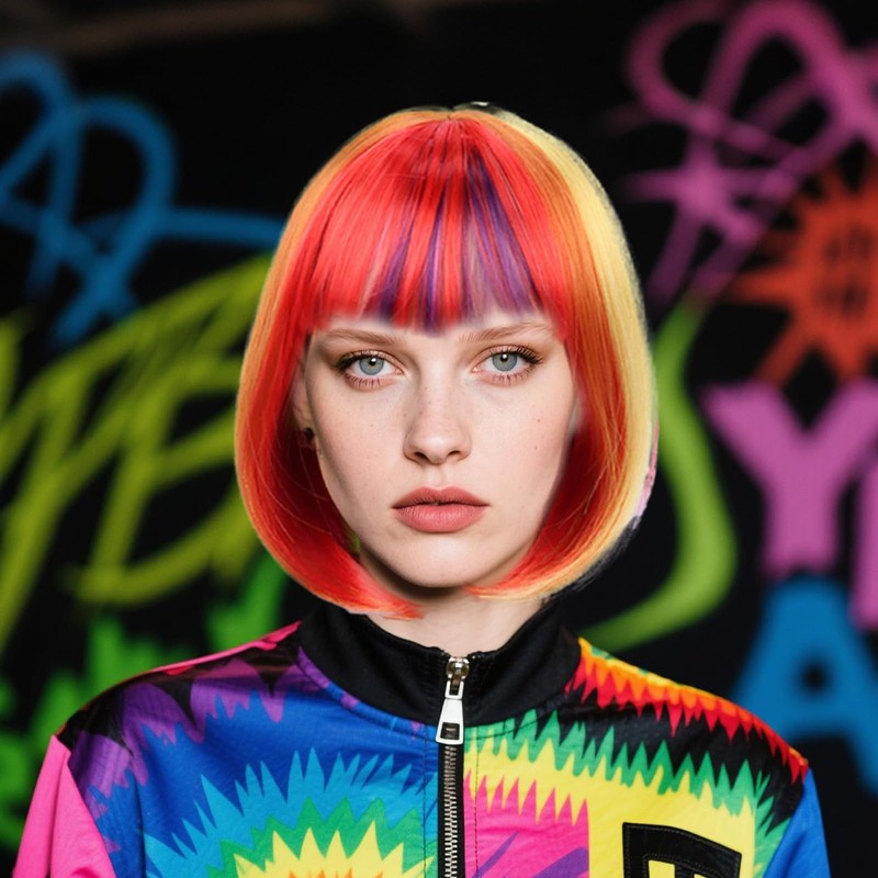 - Colorful Rainbow Look: This striking straight synthetic wig with bright rainbow hues instantly elevates any look for a costume party, street style or street style