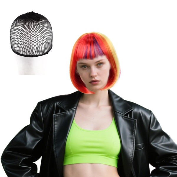 Xumann Rainbow Wig, 26cm Coloured Wigs Seven Rainbow Short Wigs for Women Daily Use with 1 Pcs Wig Cap