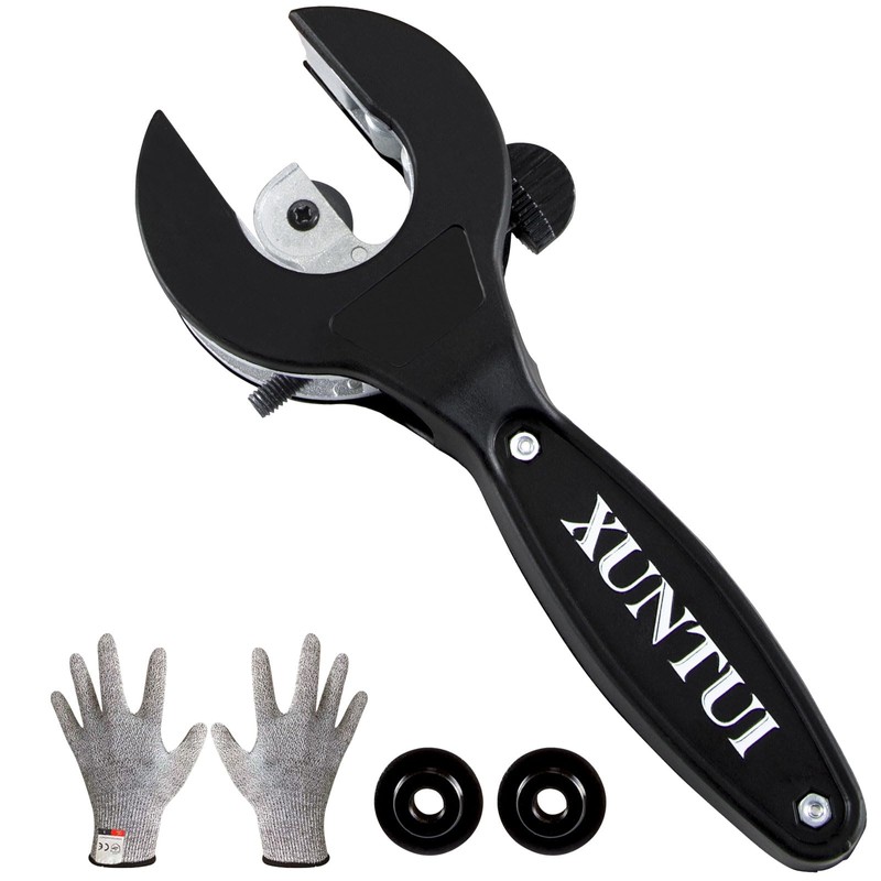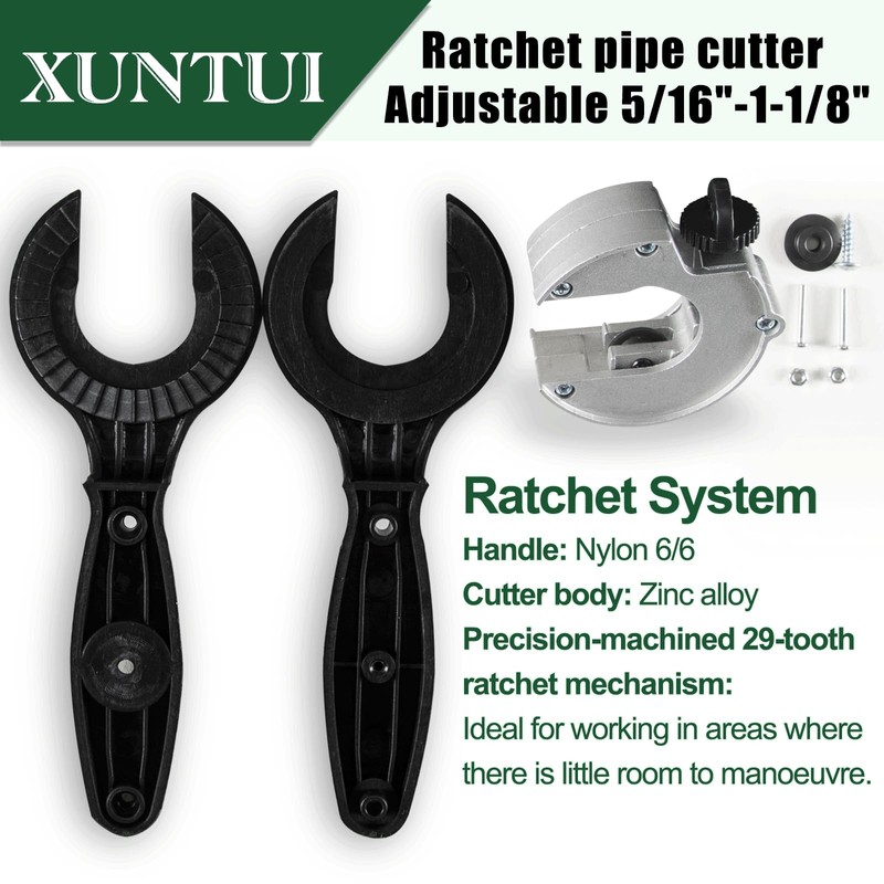 XUNTUI Ratche Tube Cutter |One-Hand Operation for Tight Spaces | Adjustable 5/16"-1-1/8" | Cuts Copper/Aluminum/Brass pipe | EN388-Certified Gloves & 3 Bearing Blades | Bilingual Visual Guide
