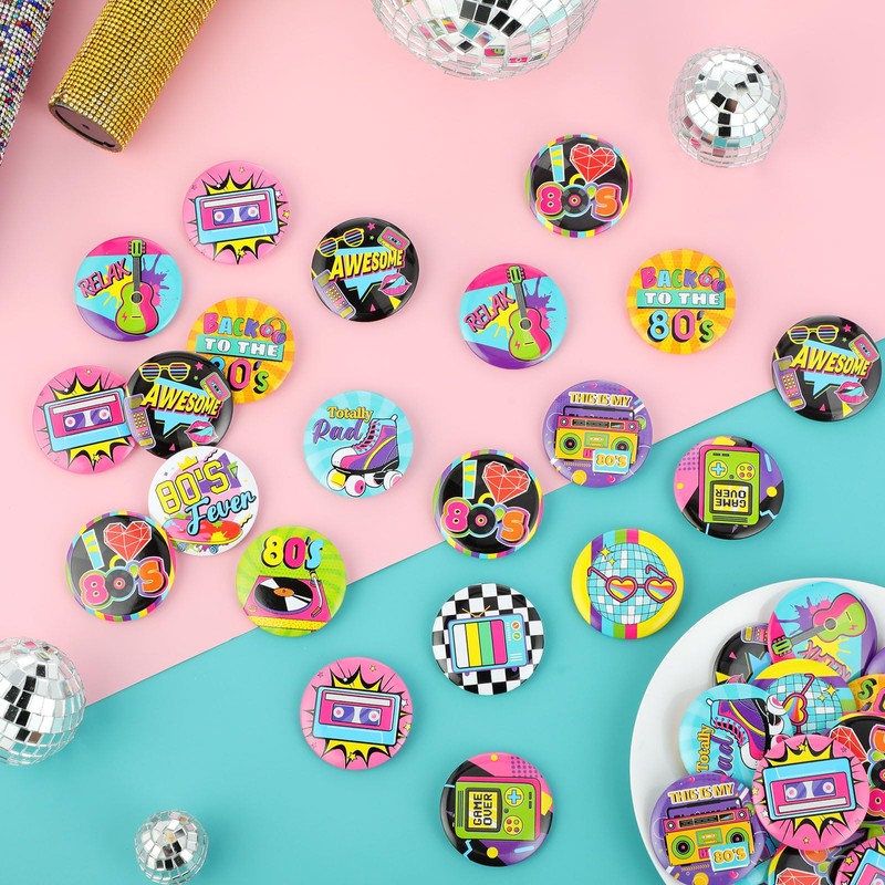 - Reliable Quality: constructed with metal and plastic, the 80's buttons pins badges and their backing are beautifully made, durable, and retain their bright colors; They are sure to accompany you for a long time under normal use