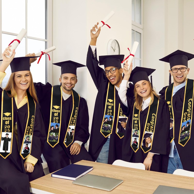 XunYee 6 Pcs DIY Photo Graduation Stole Unisex Graduation Sash Class of 2025 with PVC Clear Photo Frame Graduation Accessories Honor Congrats Grad Stole Student 70 Inches