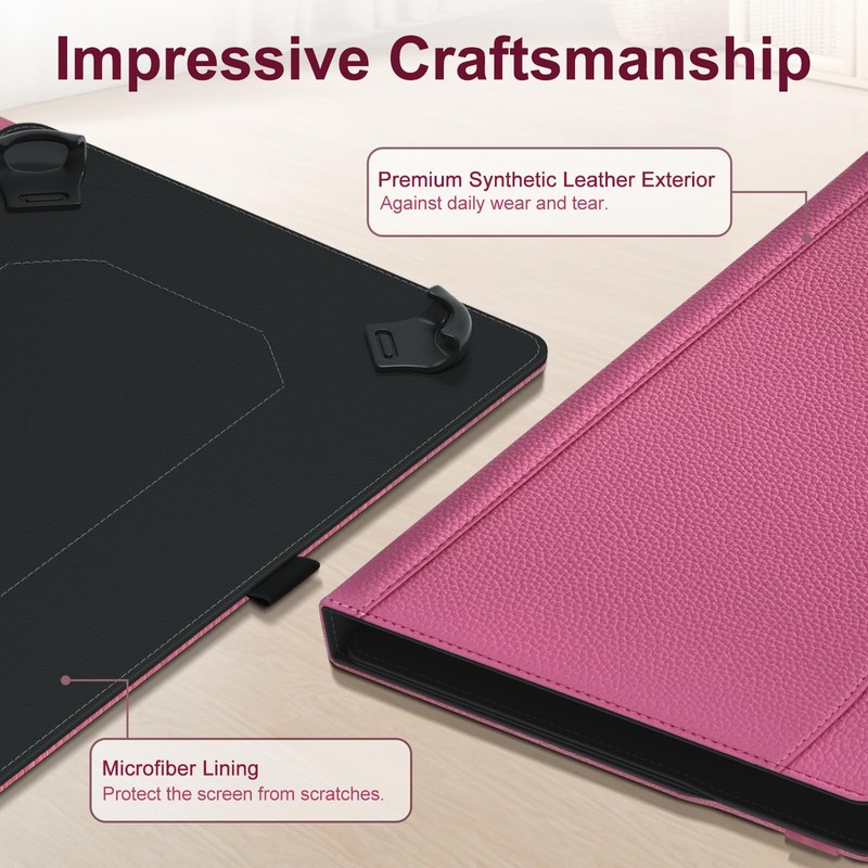 XunyLyee Universal 10.1 inch Tablet Case, 11 inch Tablet Case, Multi-Angle Viewing Stand Cover with Pocket for 9.6-11 Inch Android Tablet, Pink