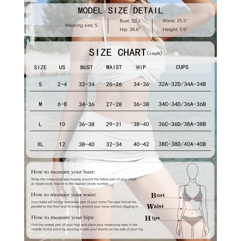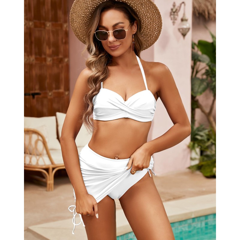 XUNYU High Waisted Bikini for Women with Skirt - Bandeau Swimsuit Top Two Piece Full Coverage Bathing Suit Drawstring Bottom White