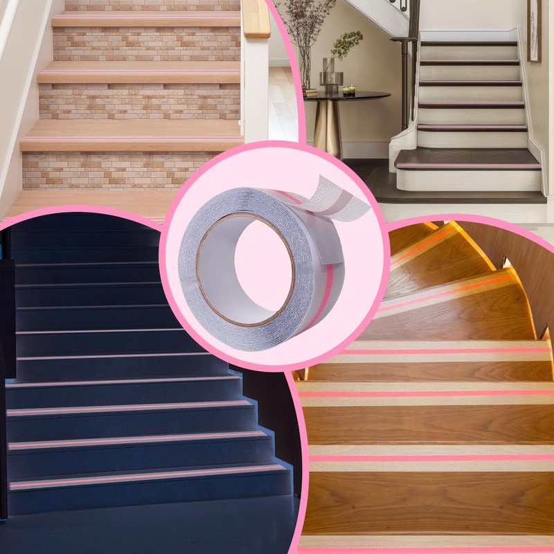 XURI Non Skid Tape Anti Slip Transparent Tape with Pink Glow in Dark Stripe,2Inch x 16.4Ft, Best Clear Grip Tape Grit - High Traction Friction Abrasive Adhesive for Stairs Step Outdoor Indoor