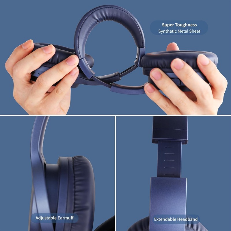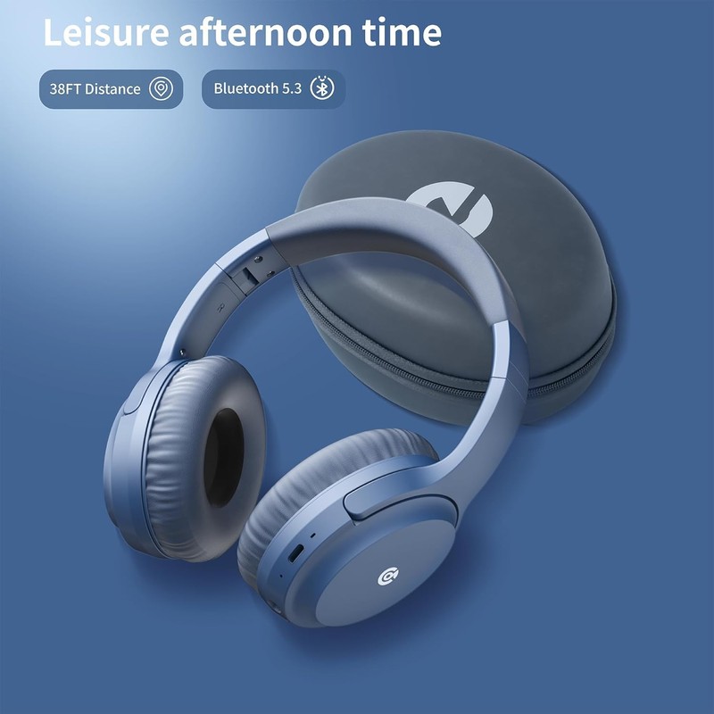Xuuly Q99 Audífonos Inalámbricos con Micrófono, Cancelación de Ruido 43dB, Batería de 80 Horas, 4EQ, Calidad HiFi,Portátil Plegable, Auriculares Over-Ear Bluetooth 5.3, Azul