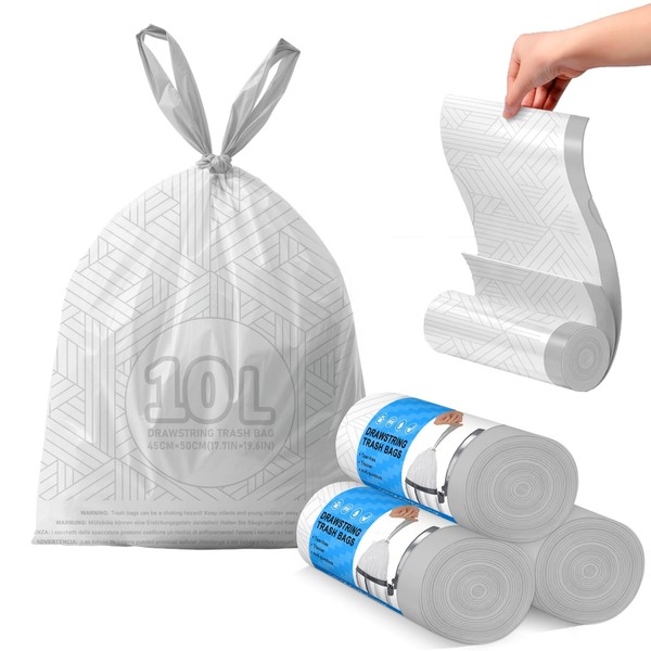XUXRUS 10 l Müllbeutel mit Kordelgriffen, 90 kleine vorgeschnittene Müllbeutel (45 × 50 cm), reißfest, wasserdicht, langlebig für Badezimmer, Küche, Wohnzimmer