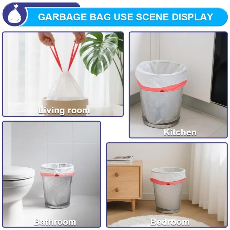 - Drawstring Bin Bags:Built-in drawstrings in these bin liners provide quick, hygienic sealing—just pull tightly to lock odors and contents. The bin bags feature strong handles to simplify carrying and tying, keeping hands clean during disposal.