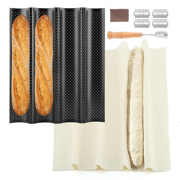 - Comprehensive Kit for Complete Baking Experience: This set includes everything you need for successful baguett-e baking: one 3-slot perforated baguett-e tray, one proofing cloth, one dough cutter with five replacement blades, and a protective sheath for safe storage. Whether you're baking for personal enjoyment or preparing bread for guests, this all-in-one kit ensures that you have all the tools required for ideal results every time.