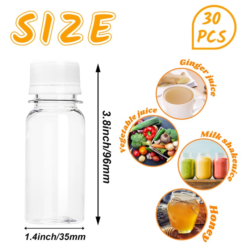 Xuyyicao Xuyyicao 30 Pcs 2 Oz Small Plastic Bottles for Liquids,Ginger Shot with Caps,Empty Shot Bottles for Liquor,Juice,Weddings,Parties,DIY