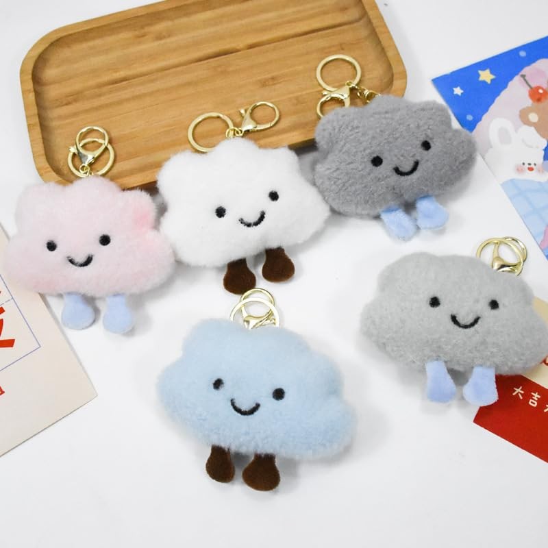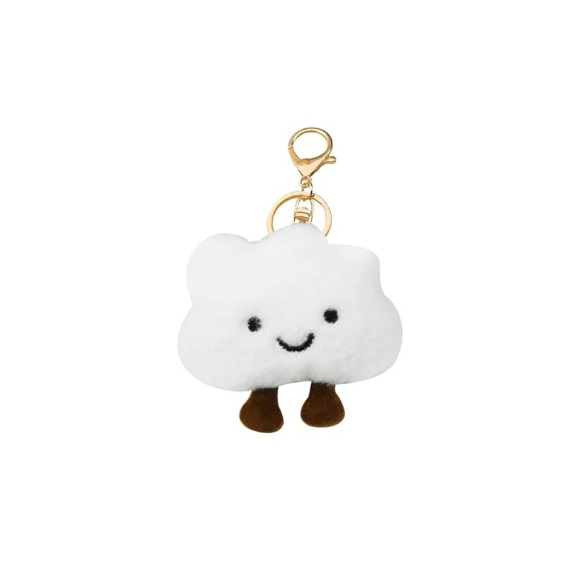 xuzhiyuan Funny Smiling Cloud Keyring Cute Smiling Face Cloud Soft Plush Car Keychain Bag Jewelry for Women-White