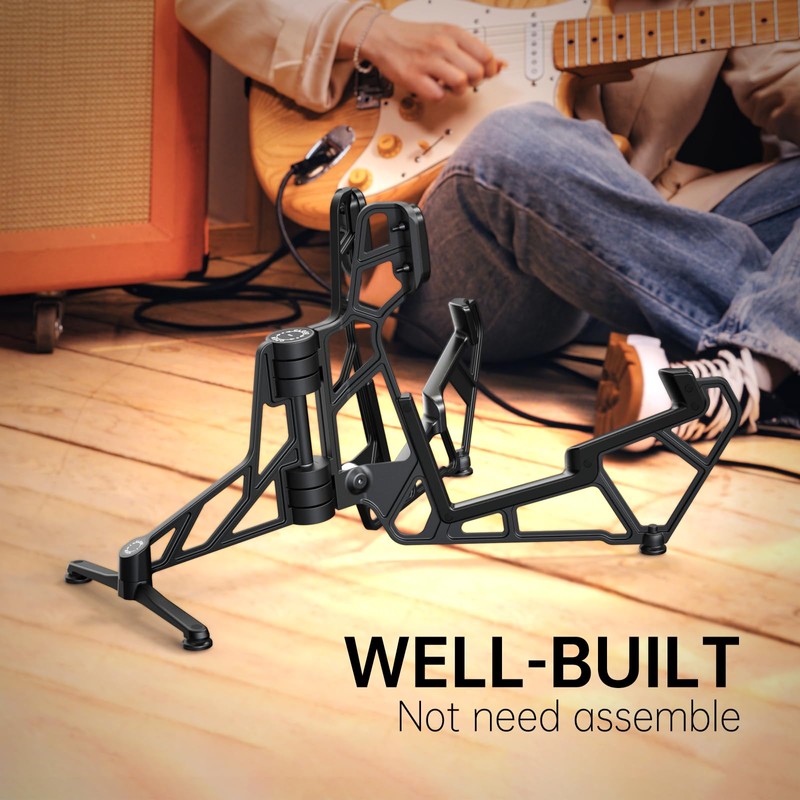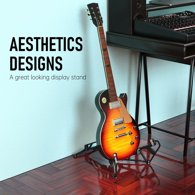 - Sturdy Aluminum Frame: Made from high-quality aluminum, the stand provides a strong and durable frame for your guitar.