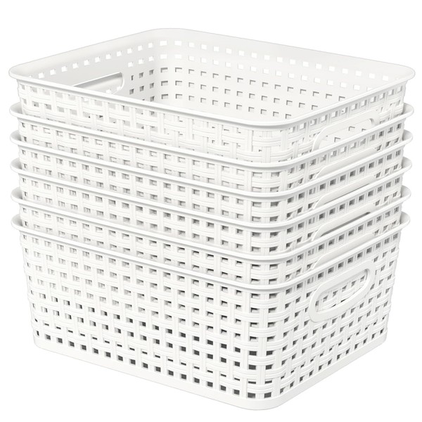 Xvvirnt 6 Pack Plastic Storage Baskets,Plastic Weave Storage Organizer Baskets,White Weave Basket Bins Organizer for Office home,10.1" x 7.55" x 4.1"