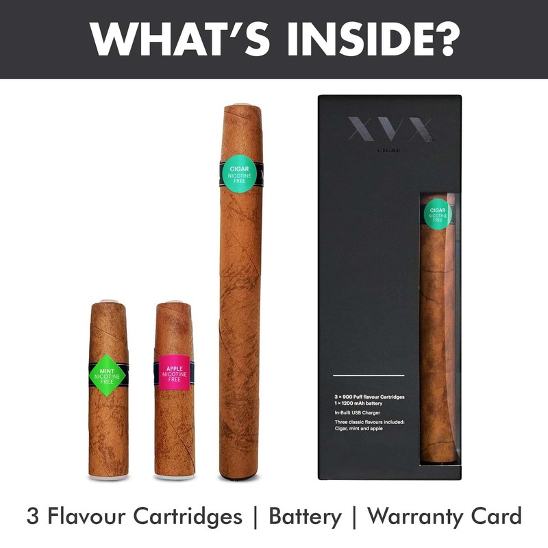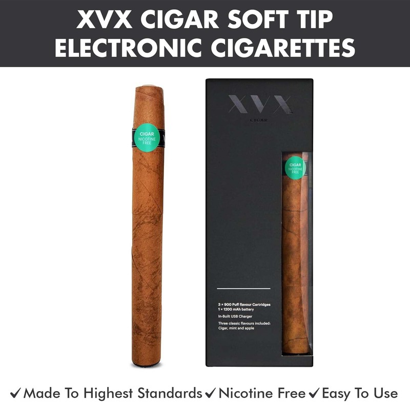 XVX XVX CIGAR SOFT TIPS STARTER KIT - Electronic Cigarettes - Rechargeable e Cigar - Includes Prefilled Flavour Cartridges - Apple - Mint - Cigar - 900 Puffs Each - USB Charger & Flavour Changing
