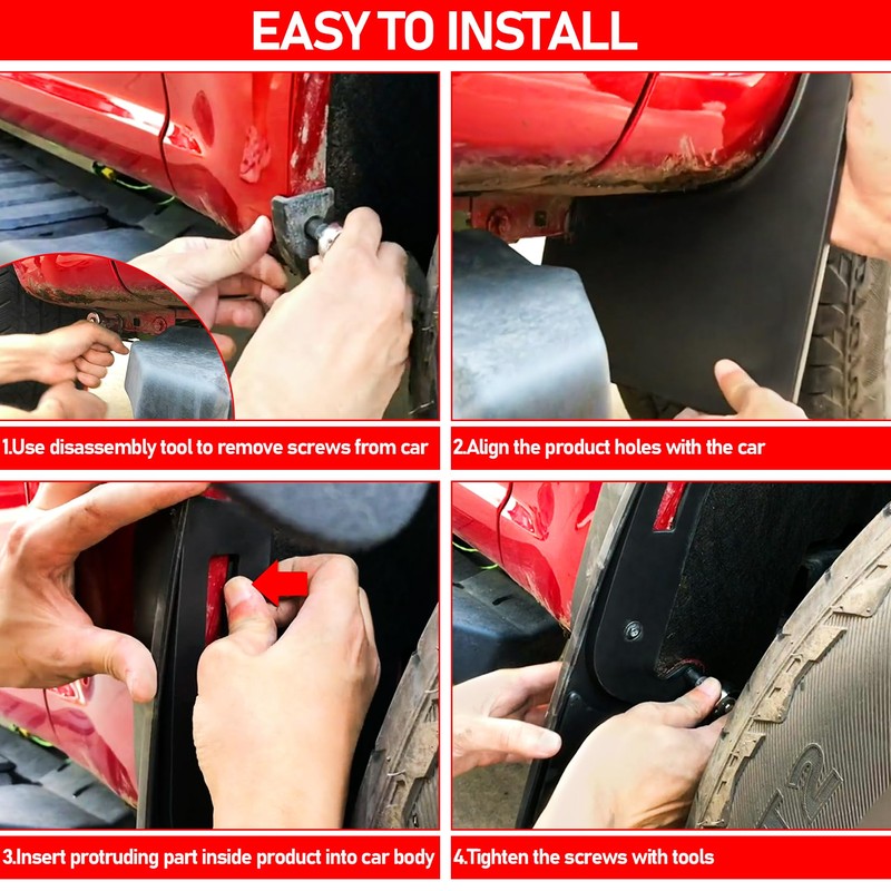 - Seamless Compatibility and Rugged Aesthetics:Available in matte black to complement the F150’s aggressive design,Shield your car from rain, snow, mud, sand, gravel, and salt with our mud flaps. They add an extra layer of protection and reduce dirt