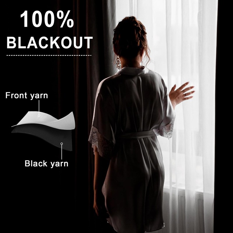 • 100% BLACKOUT EFFECT: Made of 2 layer high quality polyester fabric, our blackout curtains can block out all light and UV rays. The surface layer can meet your need for different kinds of decoration style and the inner layer has black liner with grid pattern, helping to darken the room no matter in day or night.