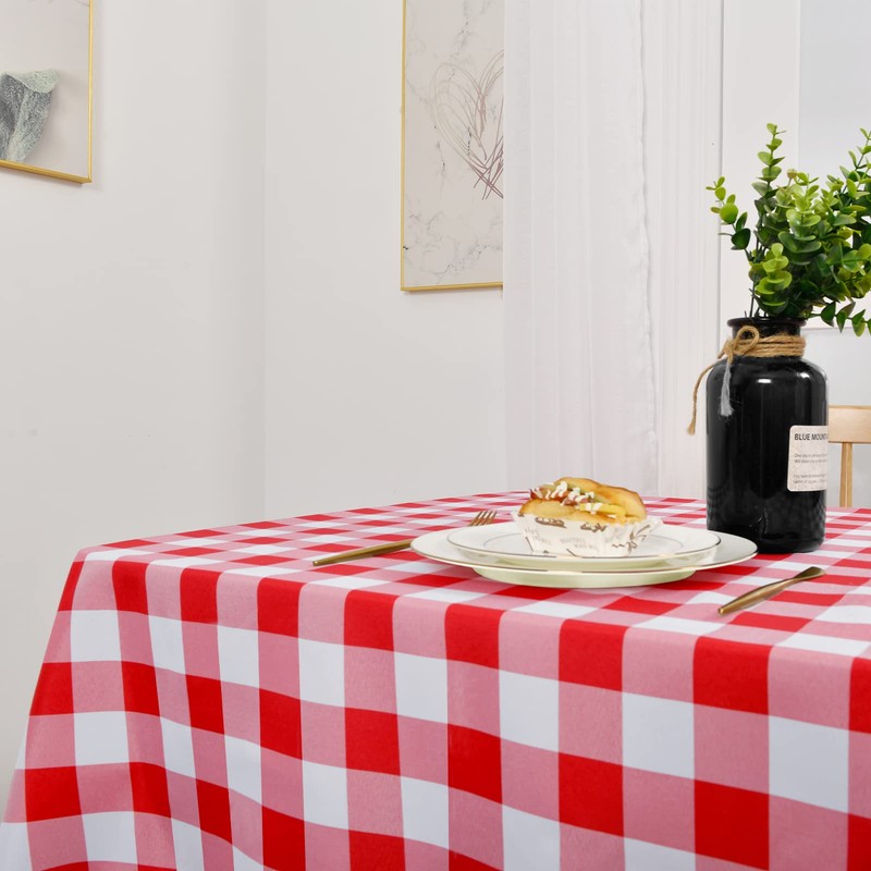 XWZO Checkered Tablecloth Rectangle - Waterproof, Oil-Proof and Spill-Proof Wipeable Plaid Table Cloth for Kitchen Dining, Indoor or Outdoor Parties and Daily Use, 54 x 108 Inch, Red and White