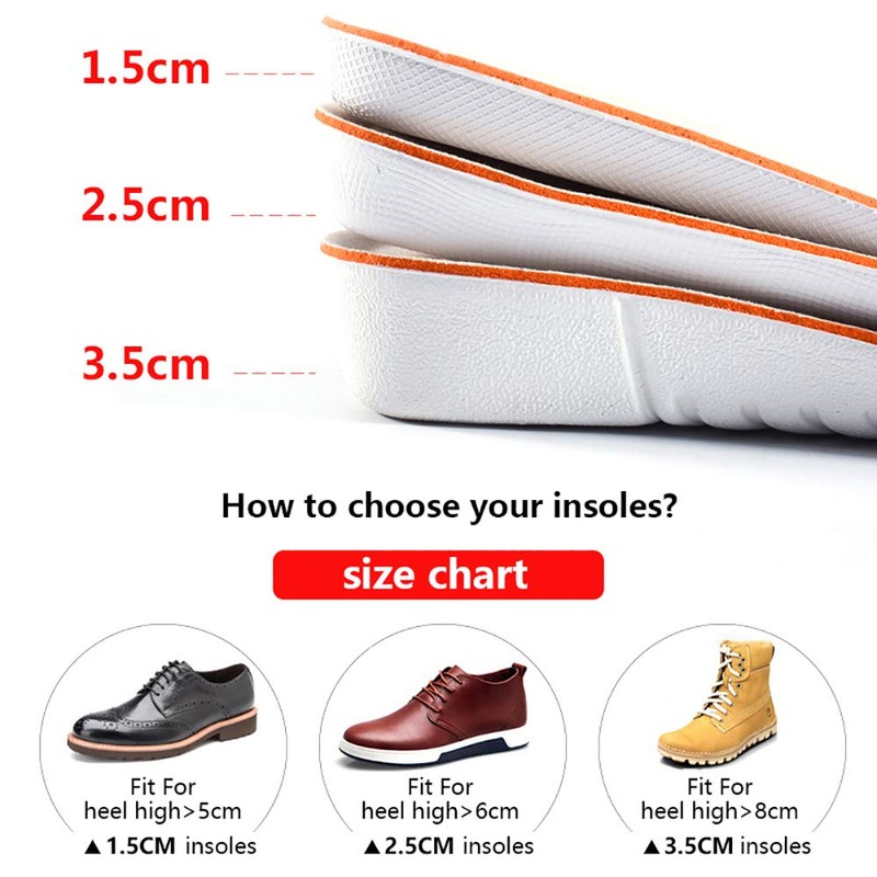- Improved fitness height - these reinforced insoles make you height up to 0.54, 1.35 inches. You can insert these all types of shoes such as: sports shoes, boots, trainers, or casual shoes, and look remarkably greater. These elevator heels invisible, No One Ever knows the secret behind you.