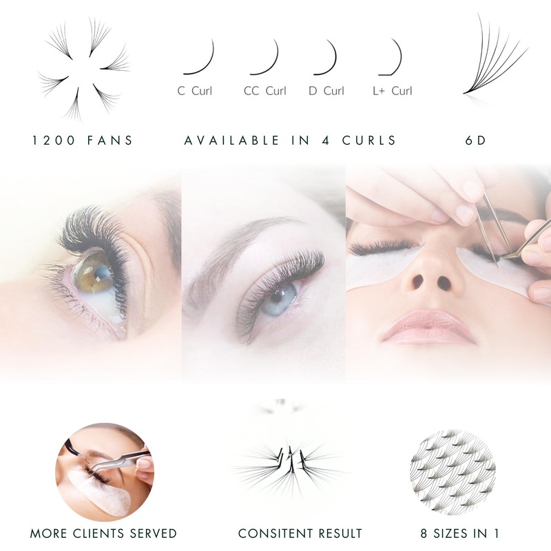 - 8️⃣ sizes-in-1️⃣ mixed box: providing lash artists with a convenient array of fan sizes. This variety allows artists to offer a broad range of eyelash styles to their clients without needing multiple boxes of fans.
