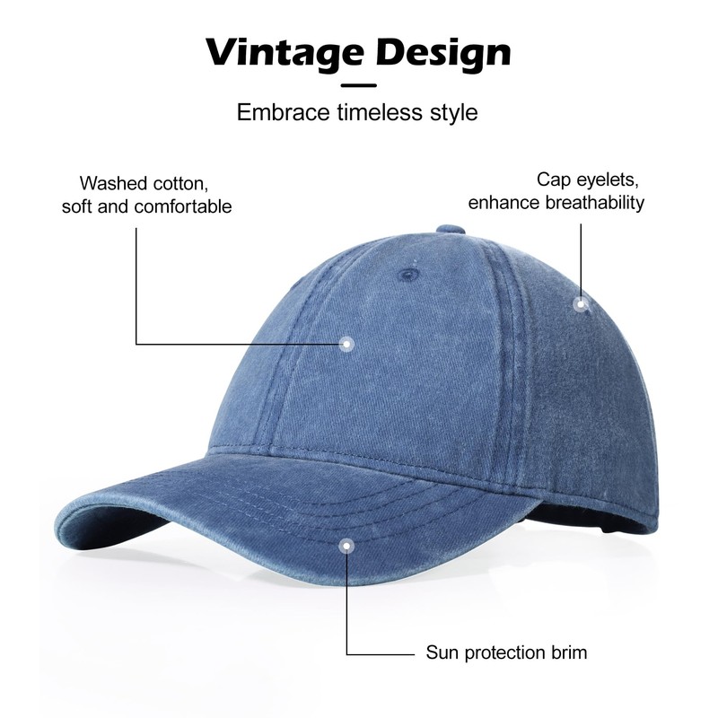 - Vintage Baseball Hat: Embrace timeless style with our vintage washed distressed cotton baseball cap. The back keyhole accommodates ponytails for added comfort.