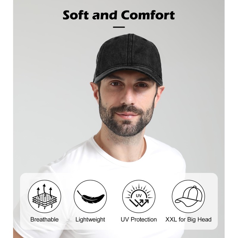 - Extra-Large Head Caps: Designed for larger heads, our XXL baseball caps range from 23.6" to 25.6". The adjustable closure ensures a perfect fit for men and women.