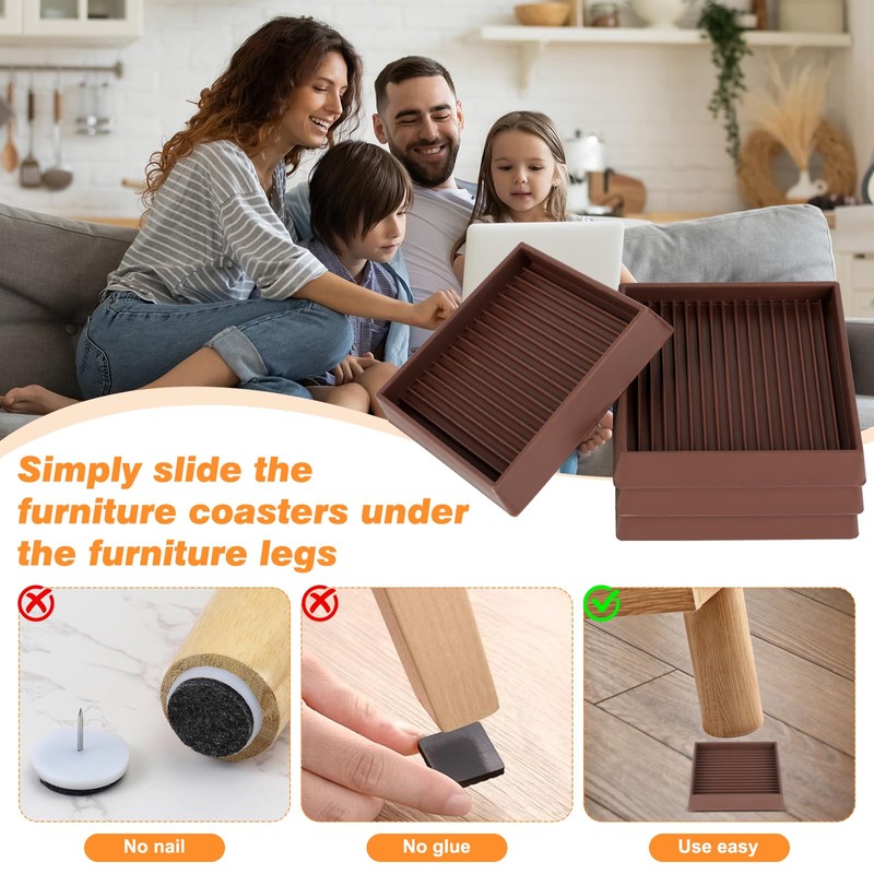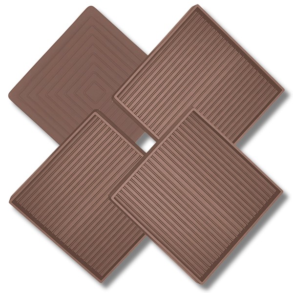 xxxHOLIC Non Slip Furniture Pads for Hardwood Floors, 4 * 4 Inch Brown, Set of 4, Rubber Bed Stoppers to Prevent Sliding, Furniture Coasters for Protecting Floors from Scratches and Reduce Noise