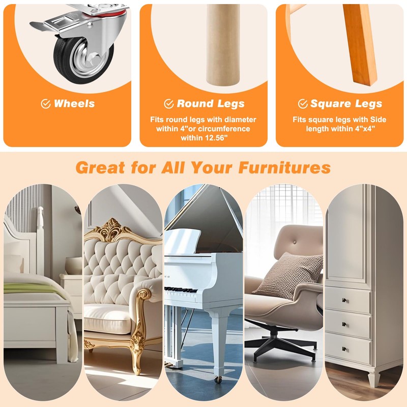 - 【Extreme compatibility】Works as furniture coasters for hardwood floors, carpet, concrete, tile and vinyl, ideal for beds, sofas and others, even wheel stoppers for rolling furniture. Multi color and size for you to choose from.