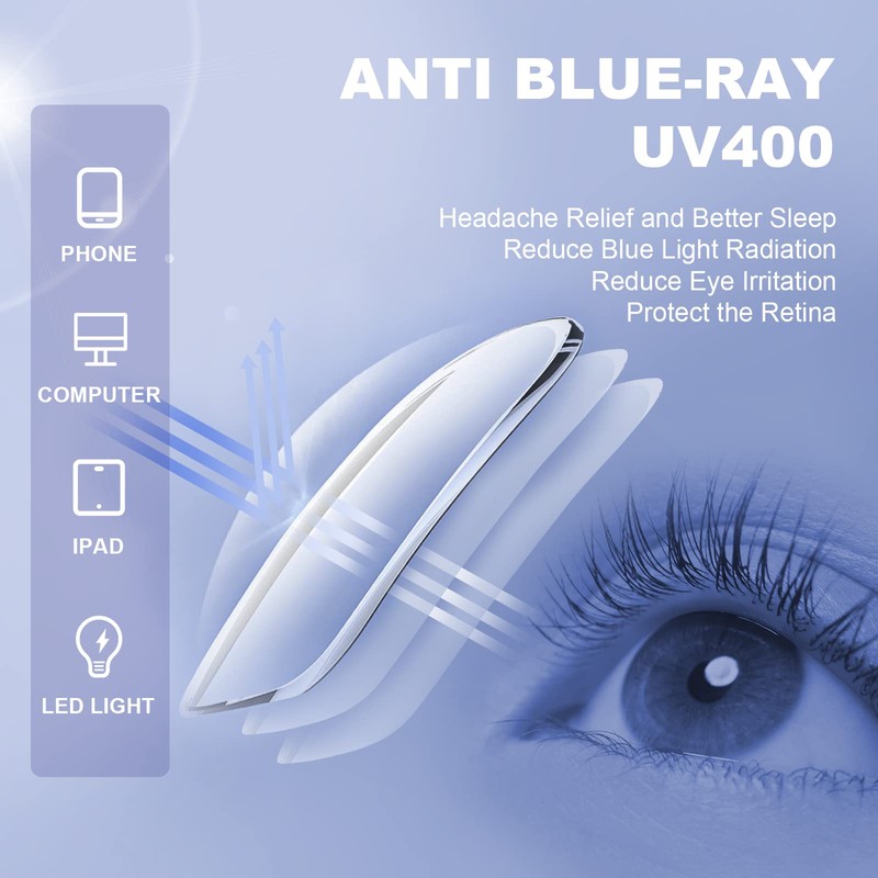 - ANTI BLUE LIGHT-Blue light blocking,reduce blue light damage caused by phone, computer, ipad, light, protect eyes and retina, relieve headaches and let you have a better sleep.