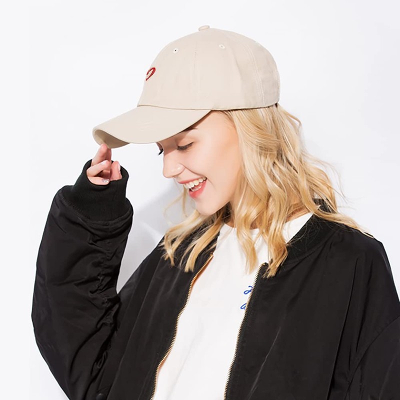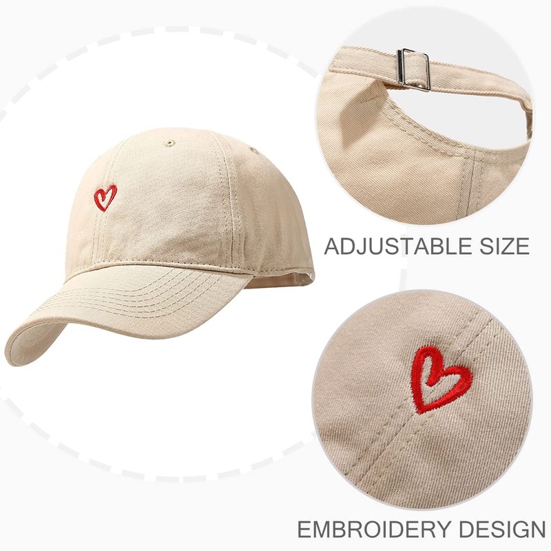 XYIYI Unisex Classic Cotton Baseball Cap Adjustable Baseball Cap, Heart Beige