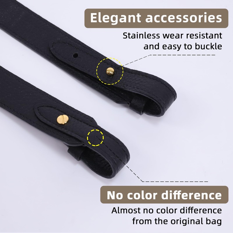 XYJG TC Leather Strap for Hermes Picotin/Lindy/Evelyne Bag, Multi Length Handmade Cowhide Crossbody Purse Strap for Handbag【19.7inch Long, 1.5inch Wide, Black (GoldStuds)】