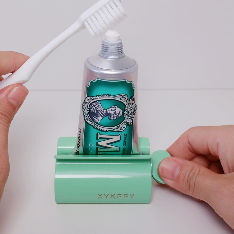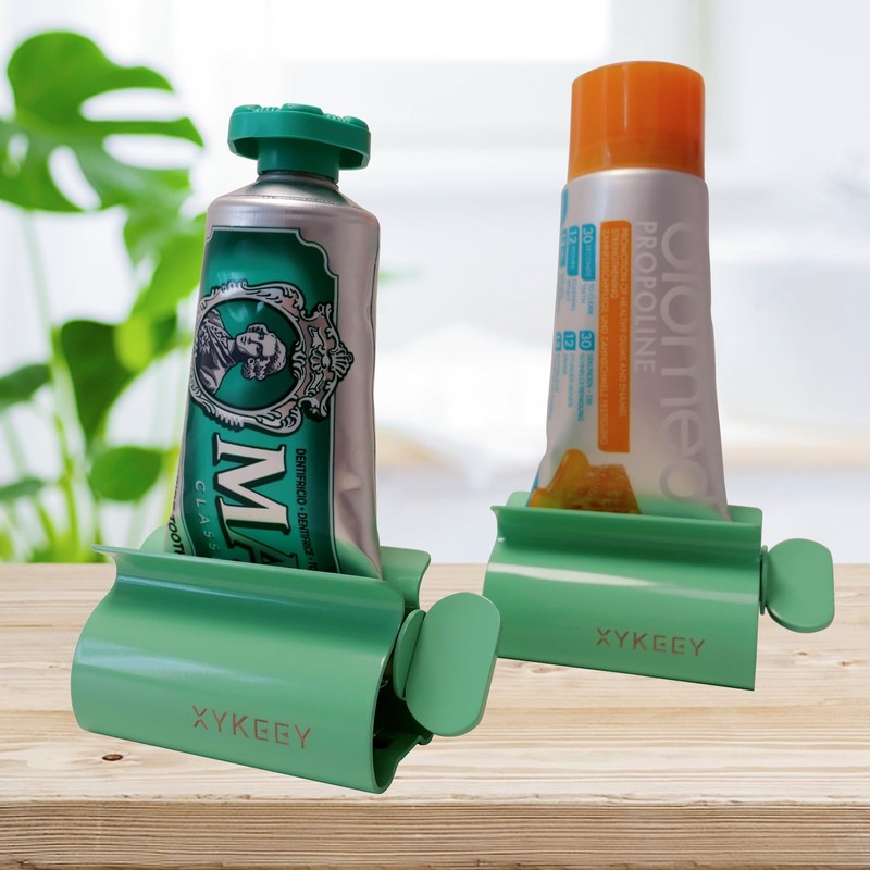 XYKEEY Toothpaste Tube Squeezer - Set of 2 Toothpaste Squeezer Rollers, Metal Toothpaste Tube Wringer Seat Holder Stand (Green)