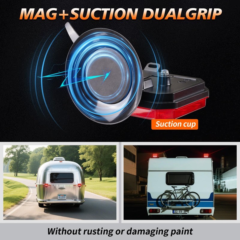- Tool-Free Magnetic Mounting: These magnetic tow lights snap on instantly to any steel surface—no tools, no drilling. Rubber-coated magnets prevent scratches and stay secure even at highway speeds, keeping lights in place on rough terrain