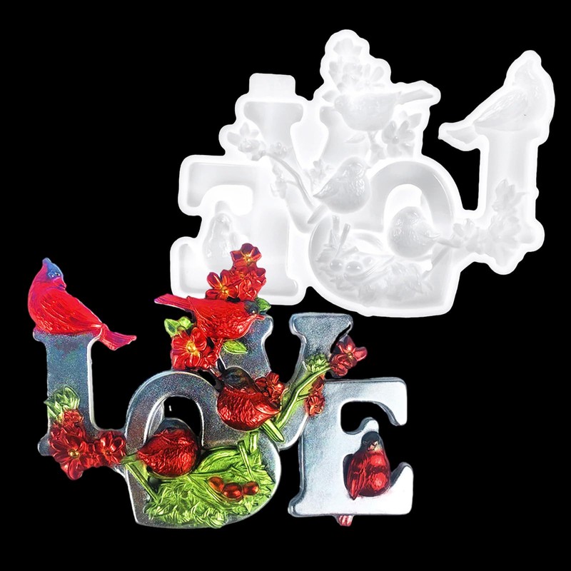 XYQHOAC Cardinal Bird Love Resin Mold Large Wall Hanging Silicone Mold for Epoxy Resin Cardinal Bird Silicone Mold Love Letter Mold for DIY Wall Hanging Art Craft Home Desktop Decor (Love Mold)
