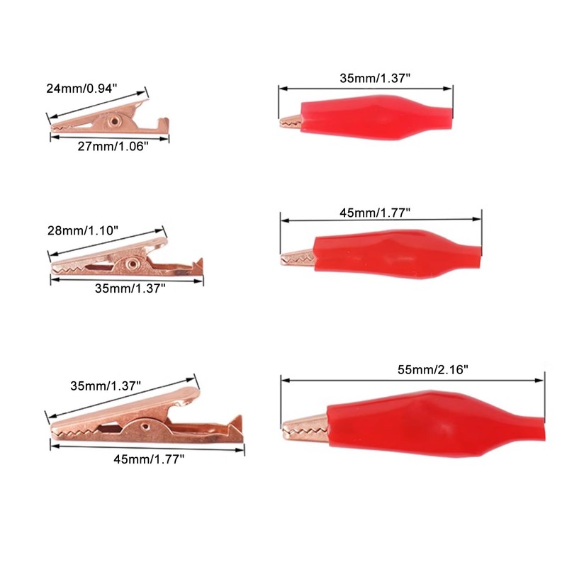 • PARAMETER - Alligator Clip Length 45mm/1.8"; Rated Current: 5A; Material: Metal, Plastic; Jaw open width(Max.): 10mm;