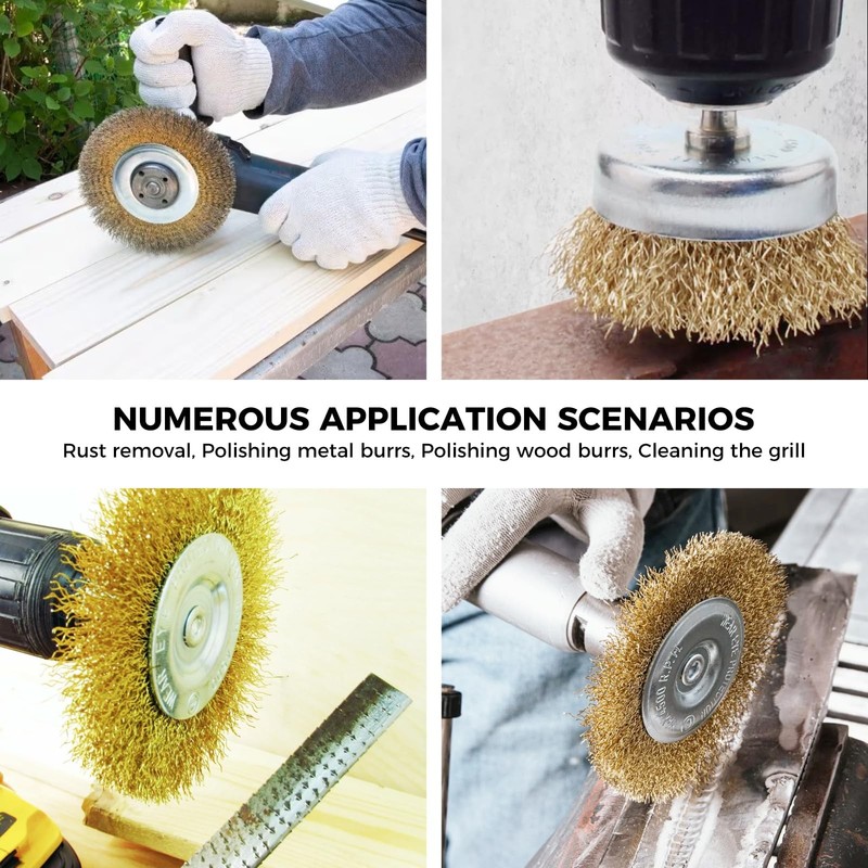 Effortless Cleaning and Corrosion Removal: With the wire wheel brush, you can effortlessly remove tough stains, rust, and corrosion from various surfaces. It saves you time and effort, providing a hassle-free cleaning experience.