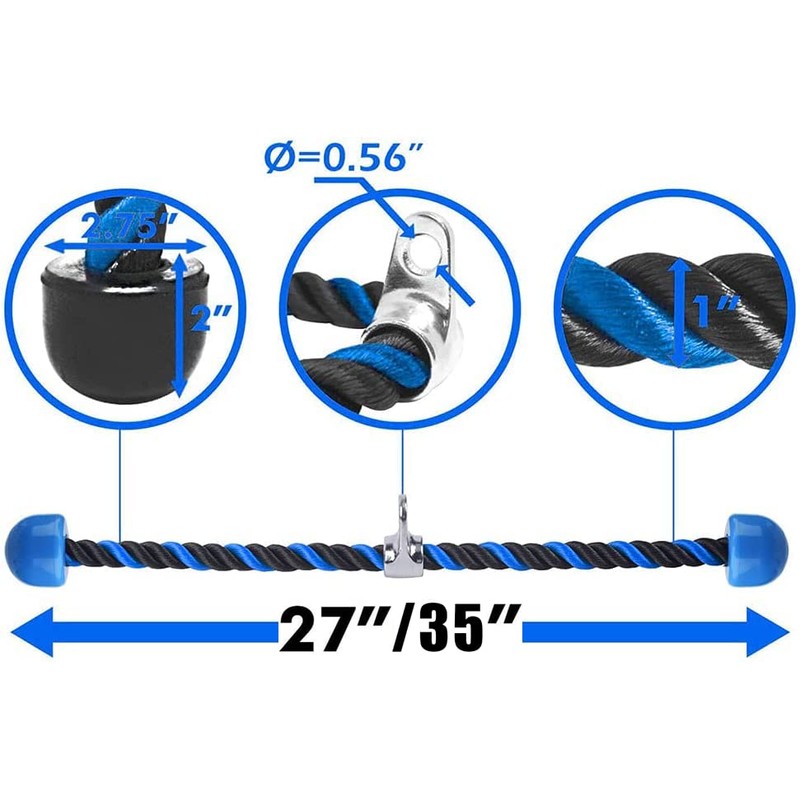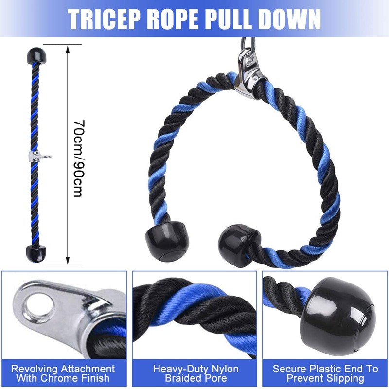 XYZDOUBLE Triceps Rope 70 cm / 90 cm Triceps Rope Cable Pull Handles Fitness with Non-Slip Handles Heavy Duty Cable Attachment for Fitness, Triceps, Gym or Home Blue