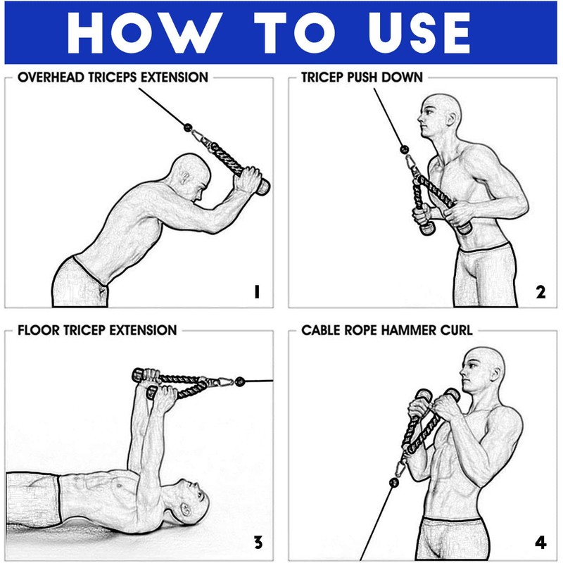 • High quality triceps rope: our triceps rope is made of durable nylon material and offers the highest durability and longevity. Our rope handles are suitable for use at home or in the gym, especially if there are a limited number of additives and a machine is free. It is a great tool to strengthen the muscles of the triceps, biceps, back, shoulders and abdomen, as well as improve your grip strength.