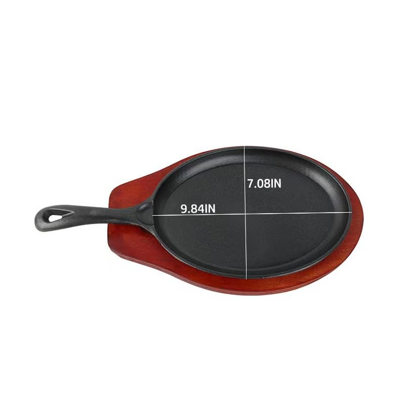 - 【Enhanced Durability and Rustic Charm】-Cast iron's legendary durability is on full display with this sizzling plate skillet's one-piece, artisanal construction. It's built to last a lifetime, developing a rich patina with each use that not only improves its non-stick qualities but also adds a touch of rustic elegance to your kitchen and dining experience.