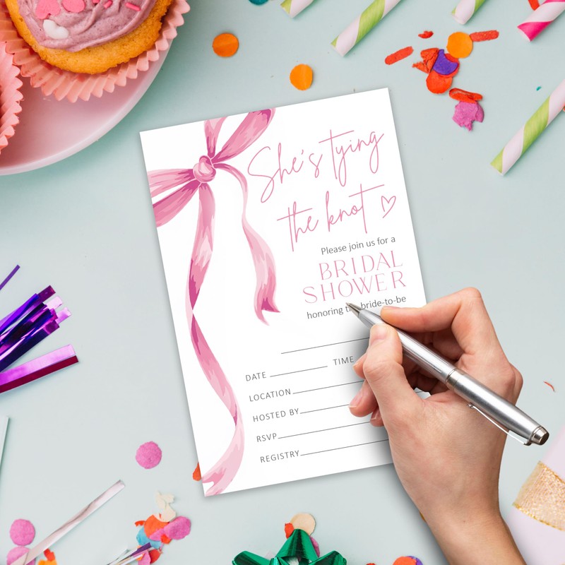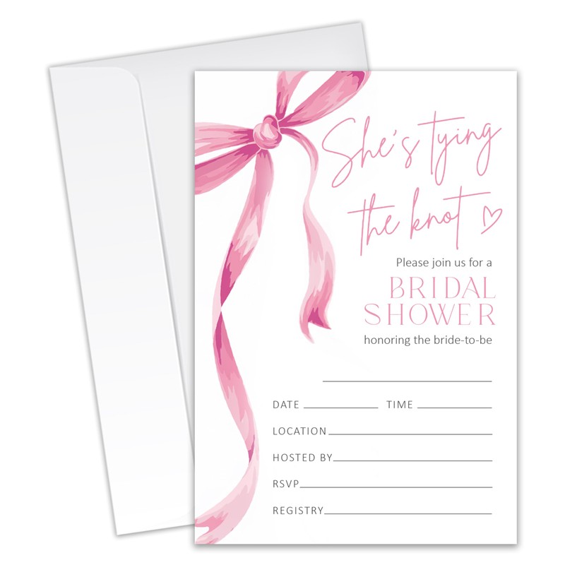 XZMBQ She's Tying The Knot - Bridal Shower Invitation Cards (4"x6", Pack of 20) with Envelopes – Pink & Bow Design Invitations for Bridal Showers & Celebrations. (078)