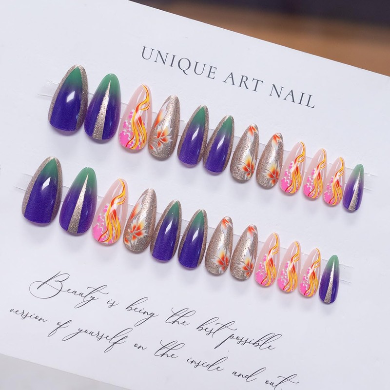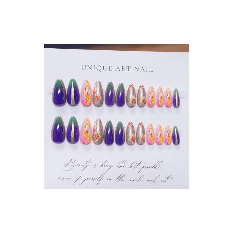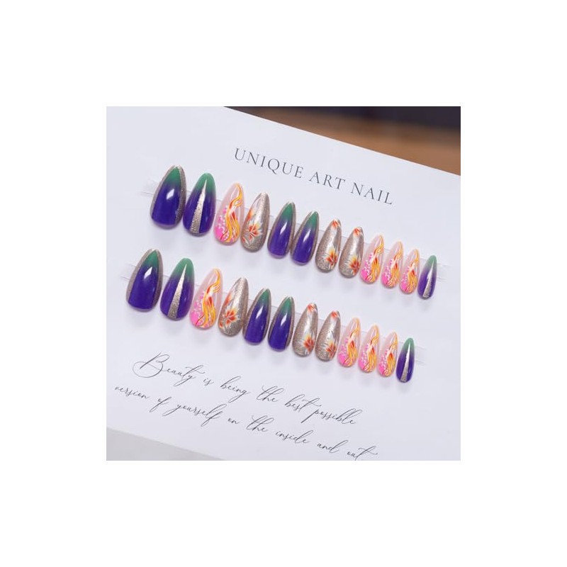 - Quick & Easy Application: These stick on nails for women require zero salon skills! Use the included jelly adhesives for temporary wear (perfect for events) or opt for the long-lasting nail glue for weeks of flawless floral manicures. The tapered almond shape fits most nail beds comfortably