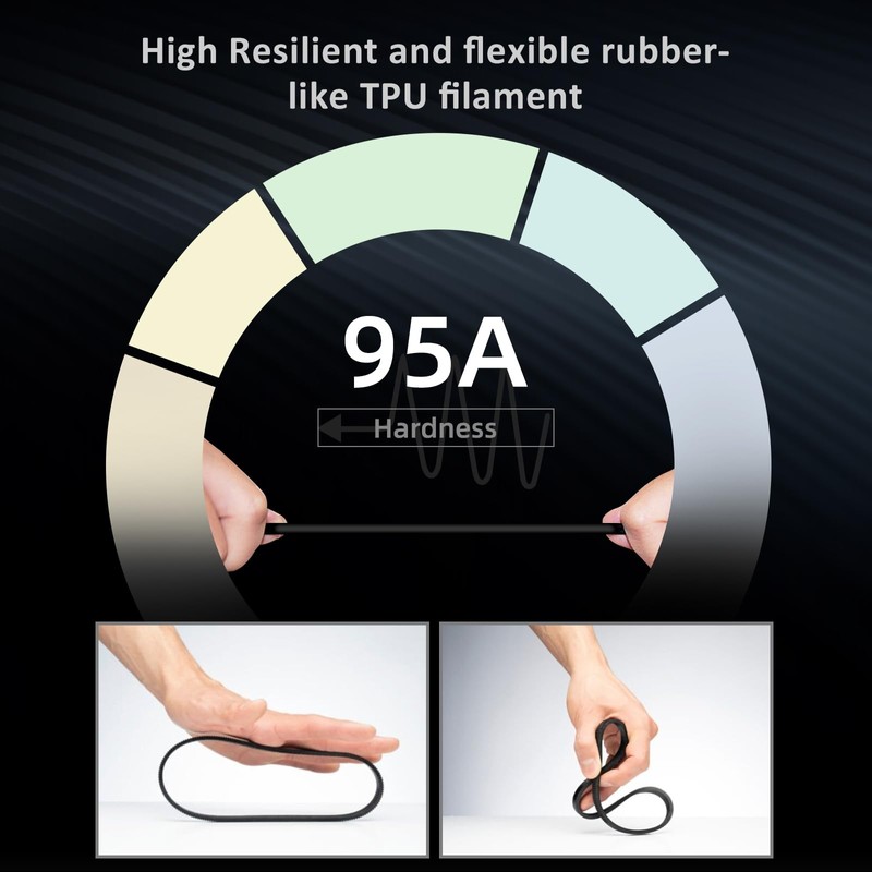 - High Resilient & Flexible: XZN TPU filament is highly flexible and elastic, allowing you to print products with tensile strength, durability, and resistance. Flexible filaments are perfect for sports protection gear, fashion, footwear, orthopedic models, car interiors, and industrial tools.